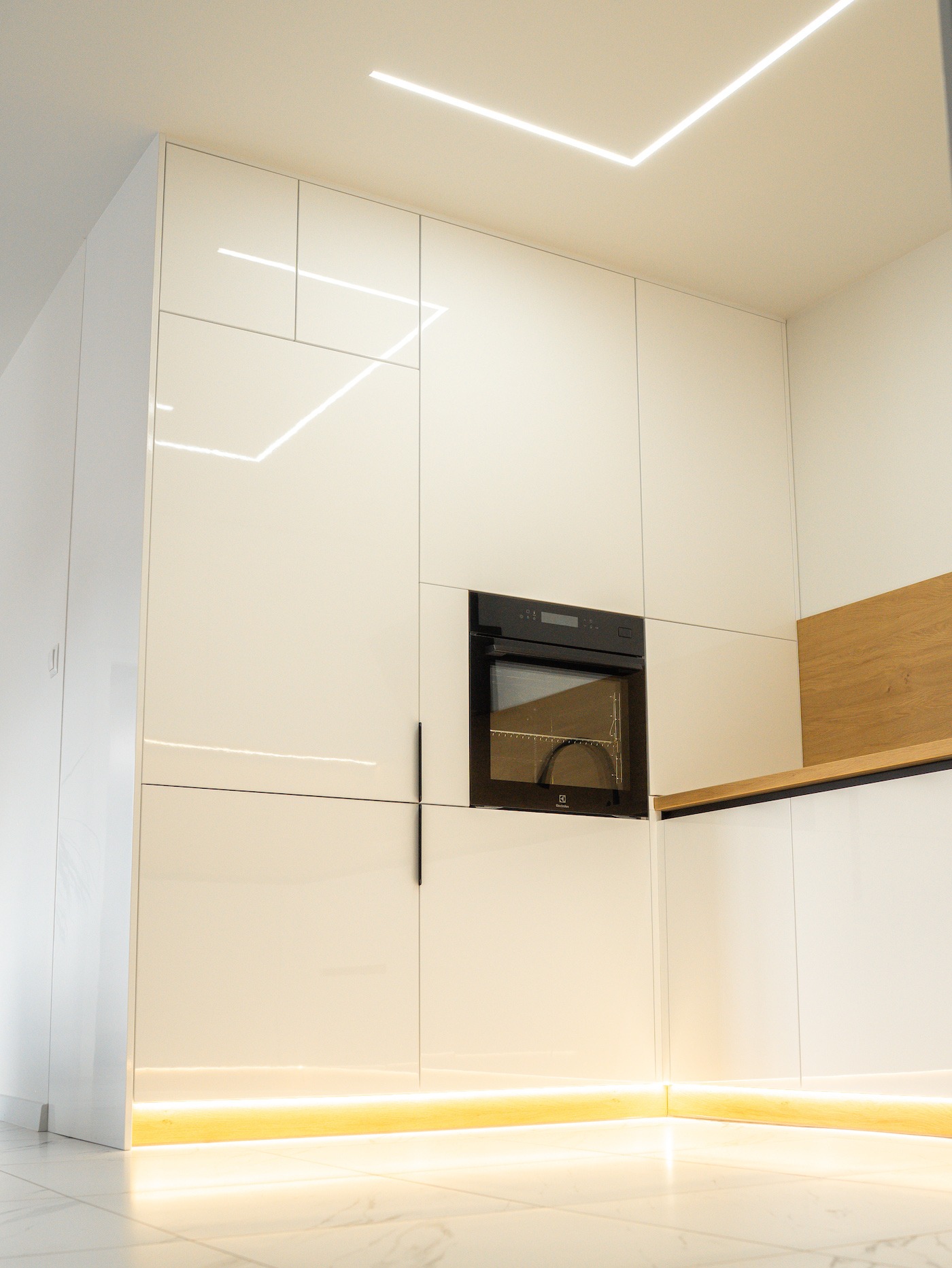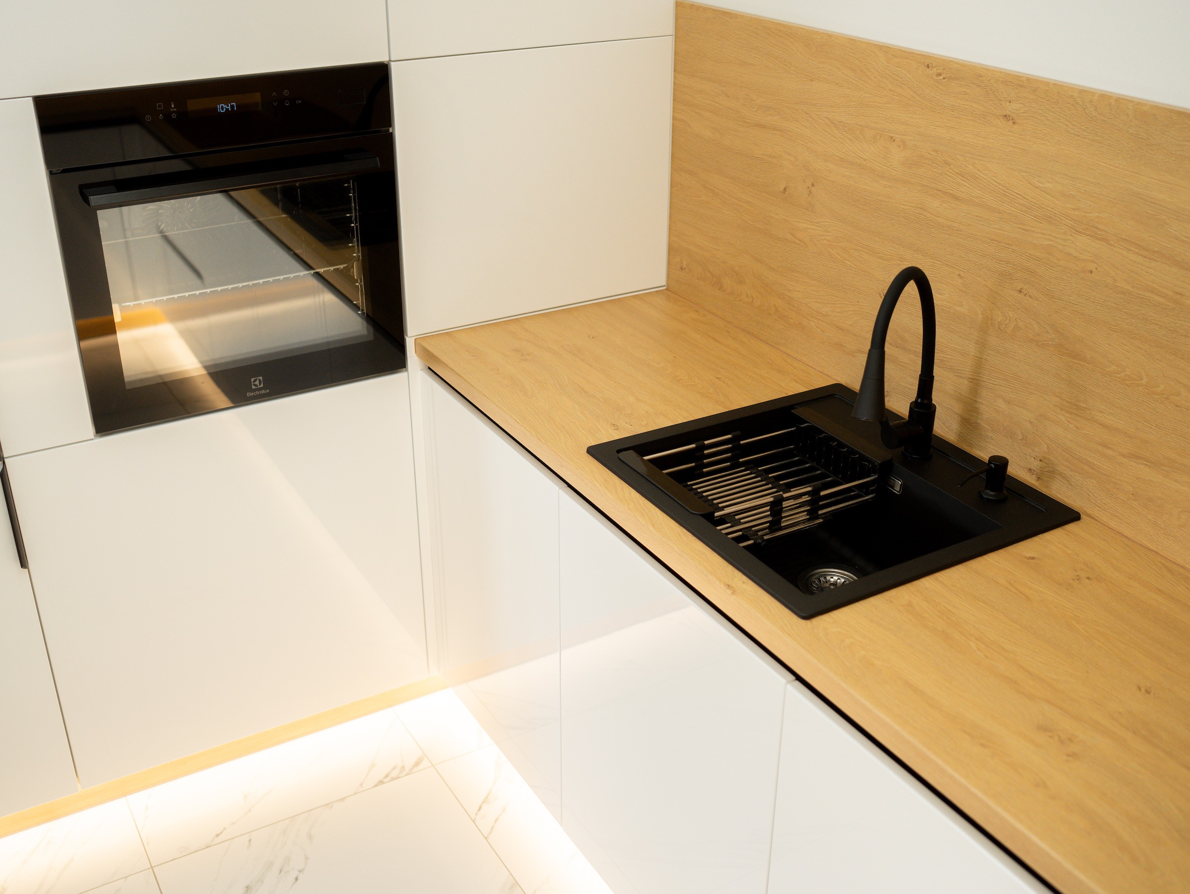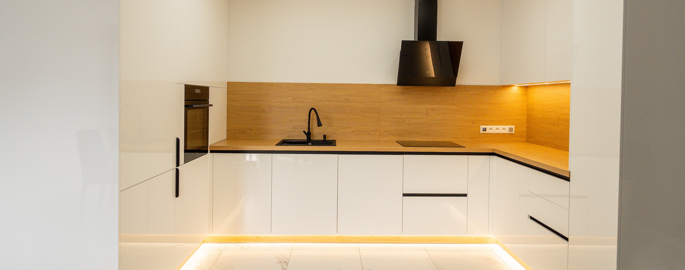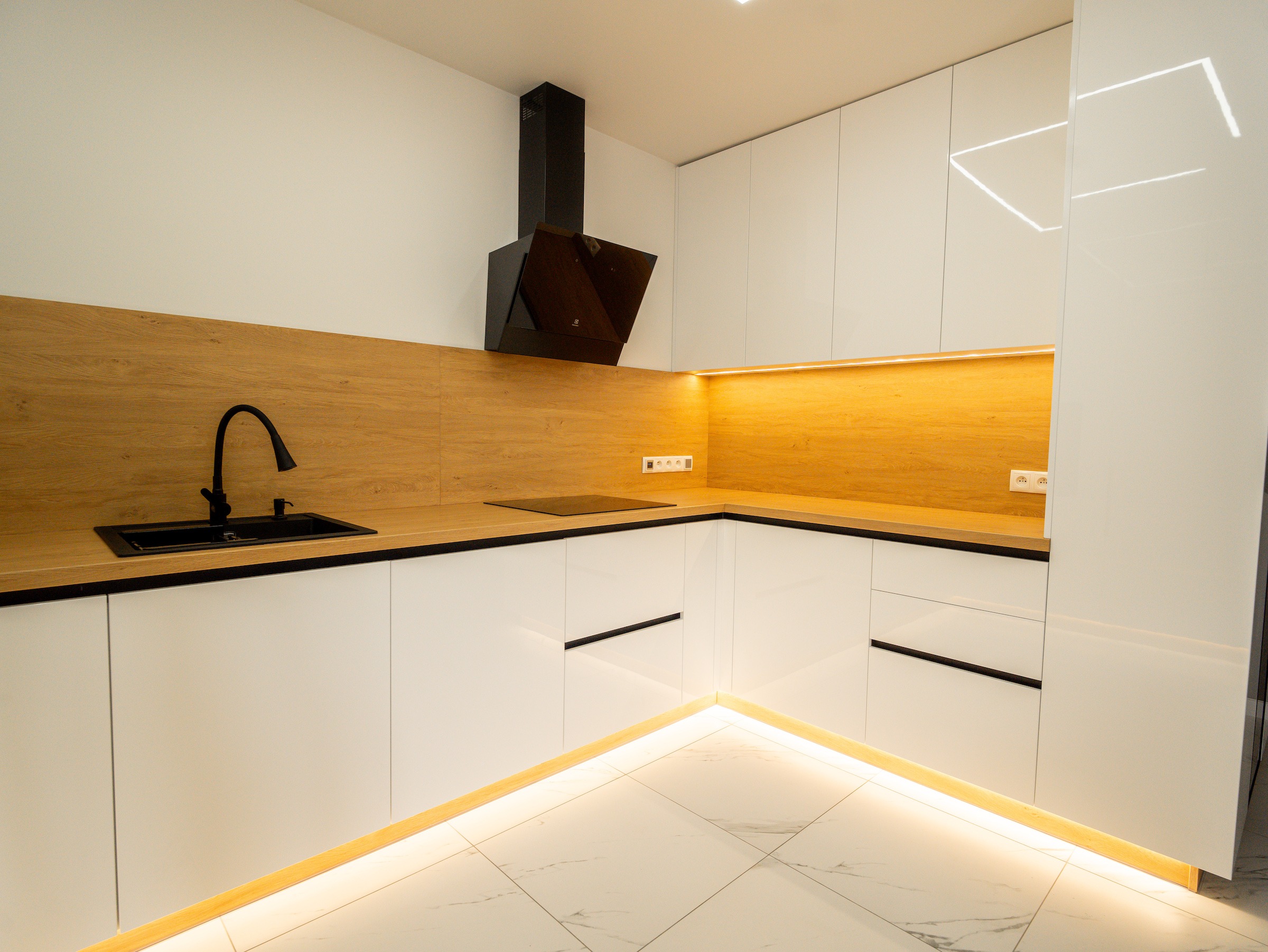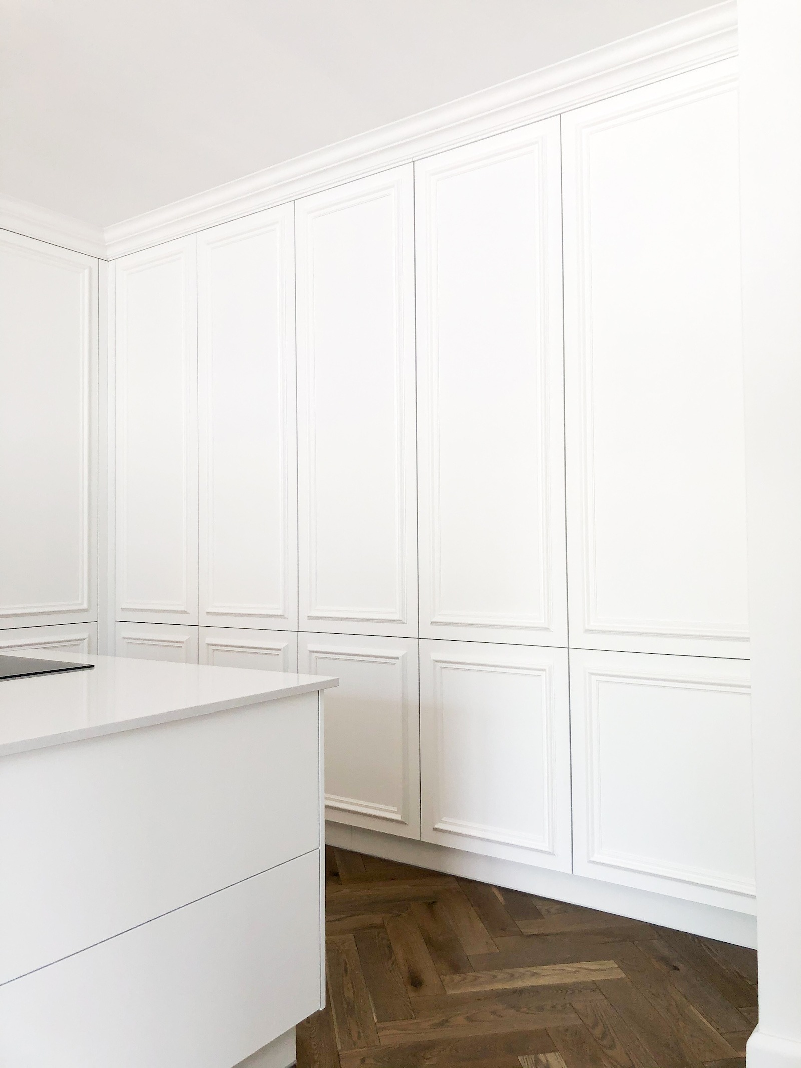 Bardzo polecam. Kuchnia prezentuje się rewelacyjnie. Naprawdę warto poczekać. Meble na wymiar są bez zarzutu, z dużą dbałością o detale. To właśnie wykończenie i detale odgrywają istotną rolę. Po tym widać, że stolarz jest profesjonalistą, dbającym o każdy szczegół. Fronty są przepiękne, malowane na biało z delikatnym frezem. Blat kuchenny został idealnie docięty. Meble zamontowano w jeden dzień i pozostawiono po sobie czystość. Wszystko zostało dokładnie odkurzone, wyczyszczone, co jest niezmiernie ważne, a mało który stolarz o to dba.