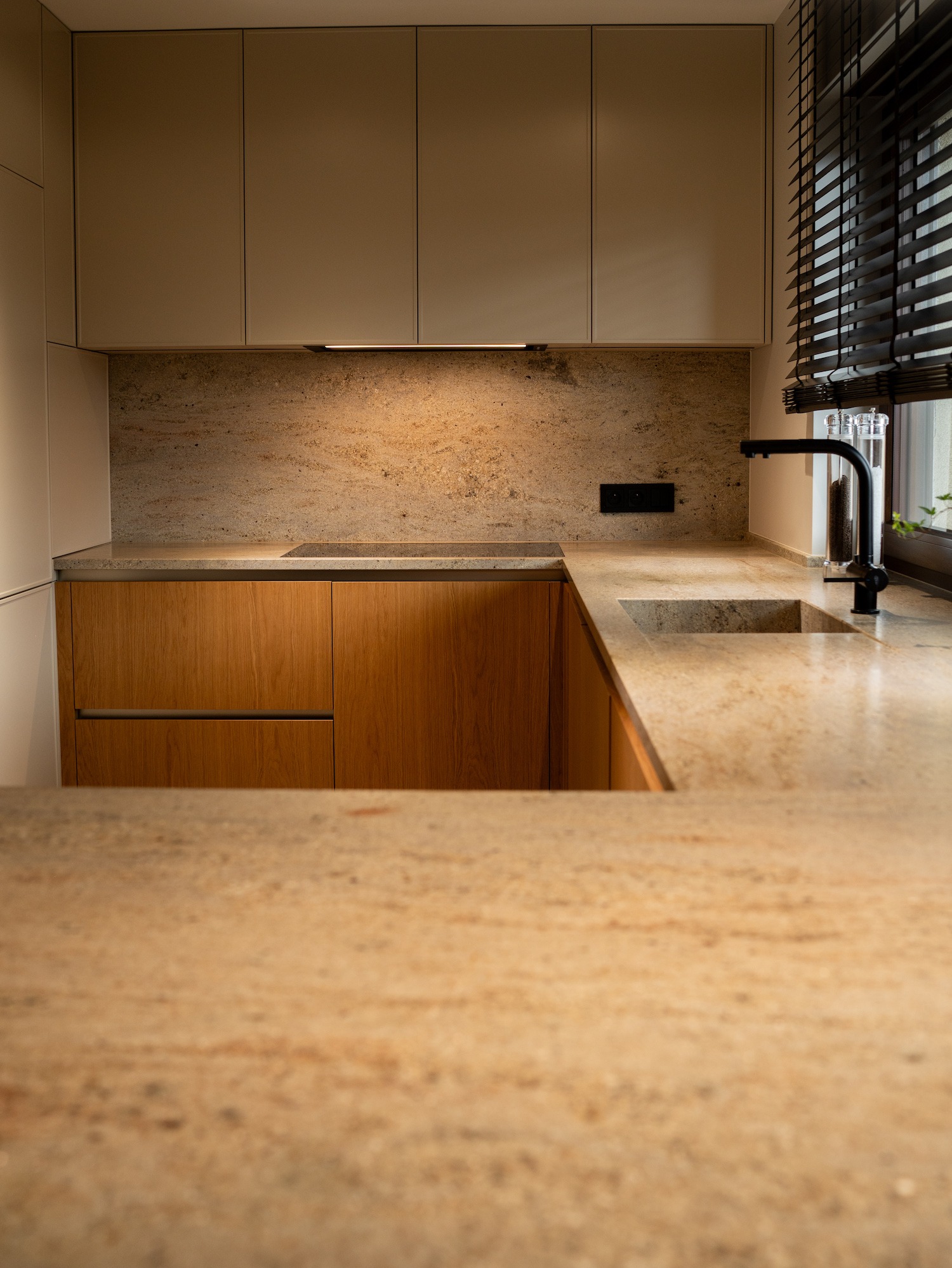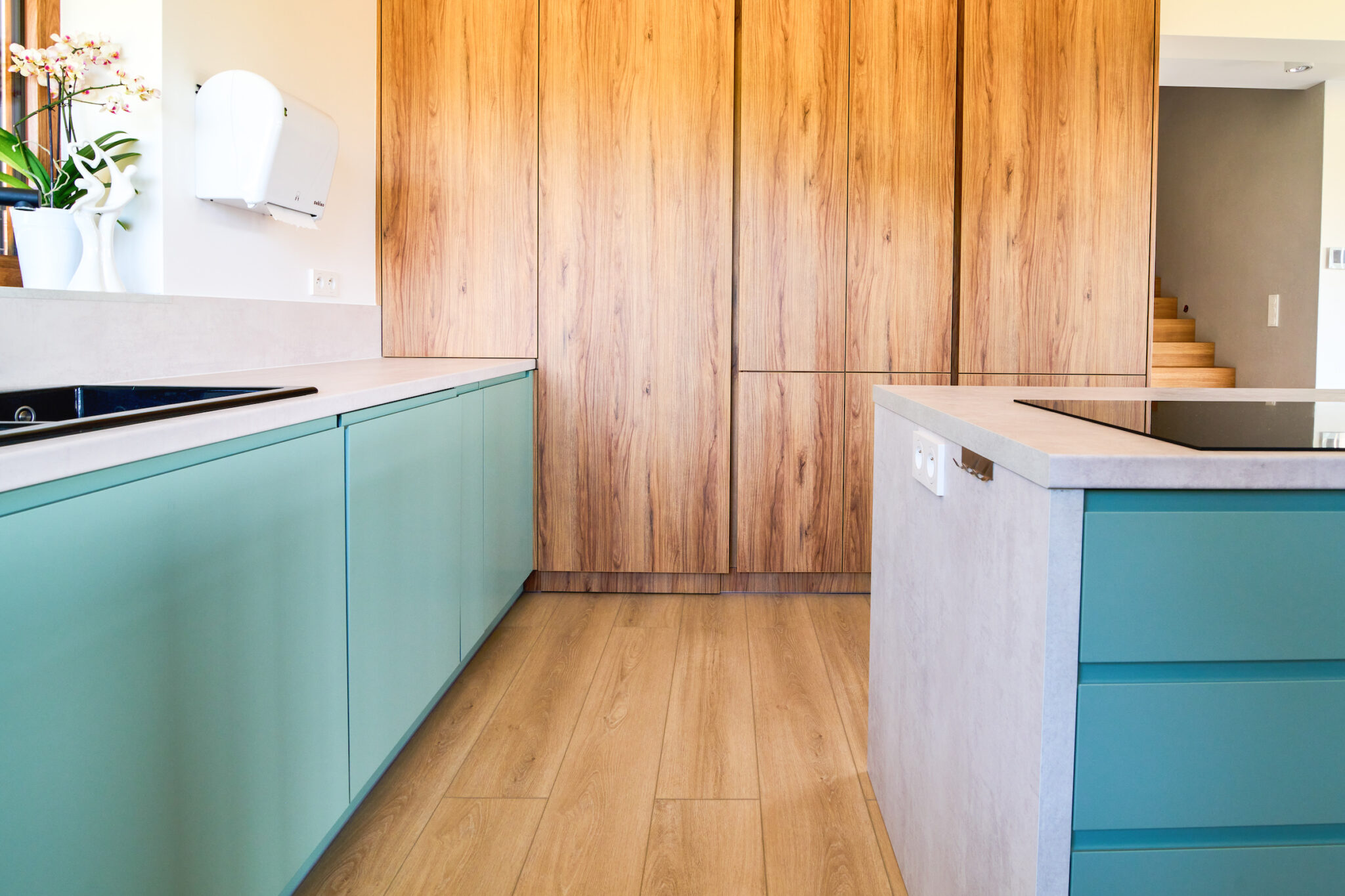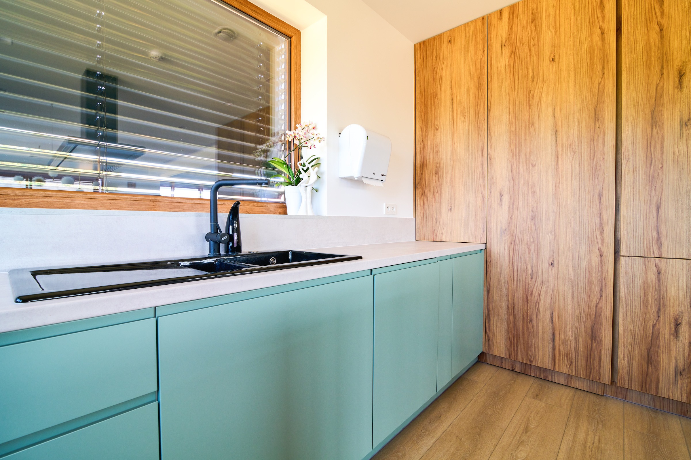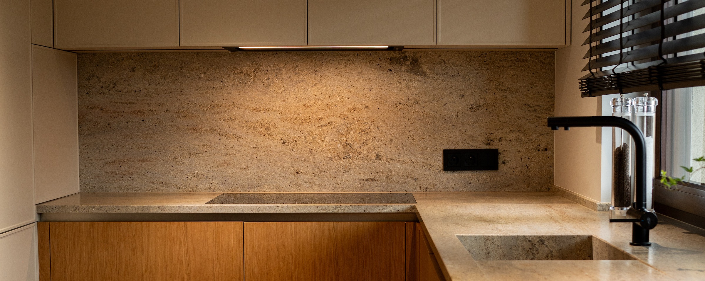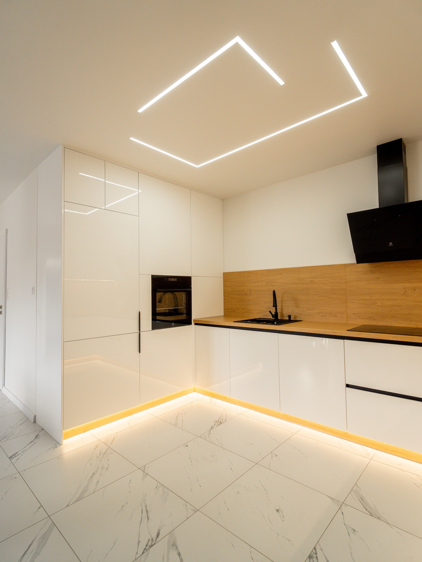 Bardzo polecam. Kuchnia prezentuje się rewelacyjnie. Naprawdę warto poczekać. Meble na wymiar są bez zarzutu, z dużą dbałością o detale. To właśnie wykończenie i detale odgrywają istotną rolę. Po tym widać, że stolarz jest profesjonalistą, dbającym o każdy szczegół. Fronty są przepiękne, malowane na biało z delikatnym frezem. Blat kuchenny został idealnie docięty. Meble zamontowano w jeden dzień i pozostawiono po sobie czystość. Wszystko zostało dokładnie odkurzone, wyczyszczone, co jest niezmiernie ważne, a mało który stolarz o to dba.